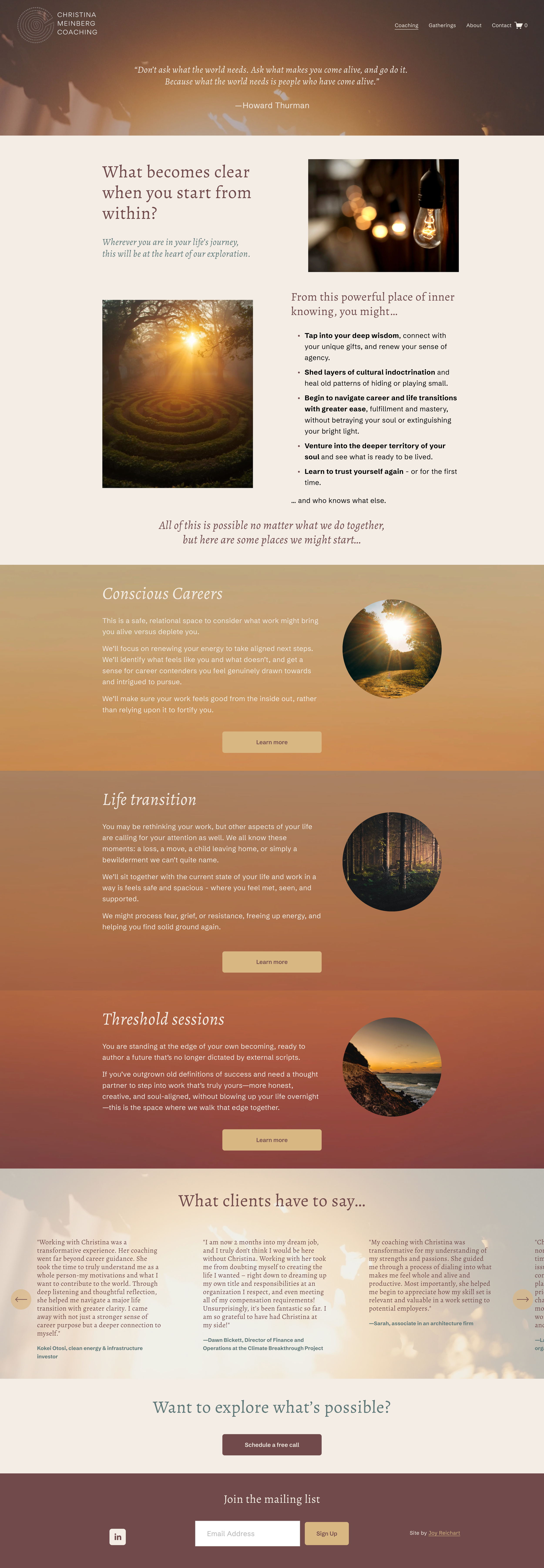 “Thank you for helping me actualize my vision! You have a unique eye, inner vibrancy and attuned way of listening that made my site feel more personal and resonant than I feel I could find with another co-creator. I appreciate how your depth and inner connection (vs internalized capitalism) guide your expression; it made this process more easeful and playful than I would have imagined. I would recommend you without hesitation.”
